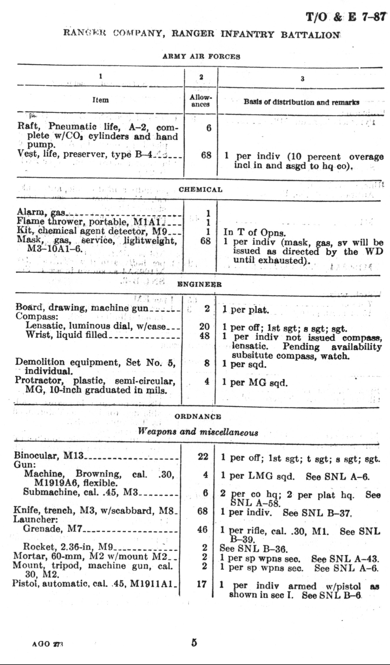 Page 5, T/O&E 7-87 "Ranger Company, Ranger Infantry Battalion", dated 29 February 1944