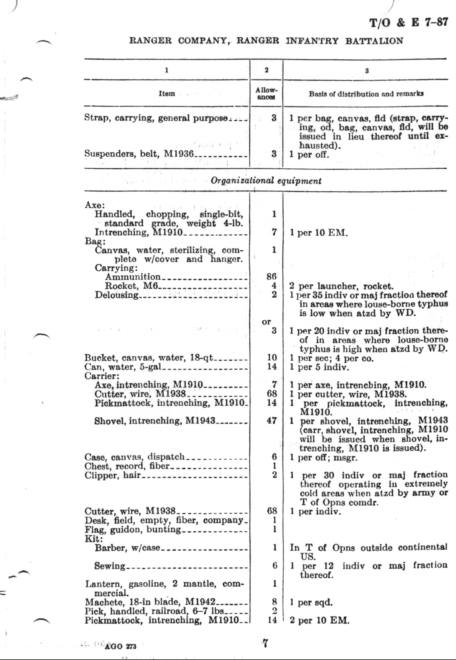 Page 7, T/O&E 7-87 "Ranger Company, Ranger Infantry Battalion", dated 29 Feb 1944